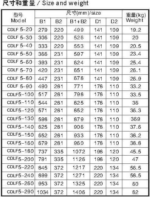 CDLF為安裝標準電機的非自吸立式多級離心泵,電機軸通過泵頭用聯軸器直接與泵軸聯接,拉桿螺栓將耐壓筒、過流部件固定在泵頭和進出水段之間,泵進出水口在泵底同一直線上;本泵可根據需要配置智能保護器,對泵干轉\缺相\過載等進行有效保護。